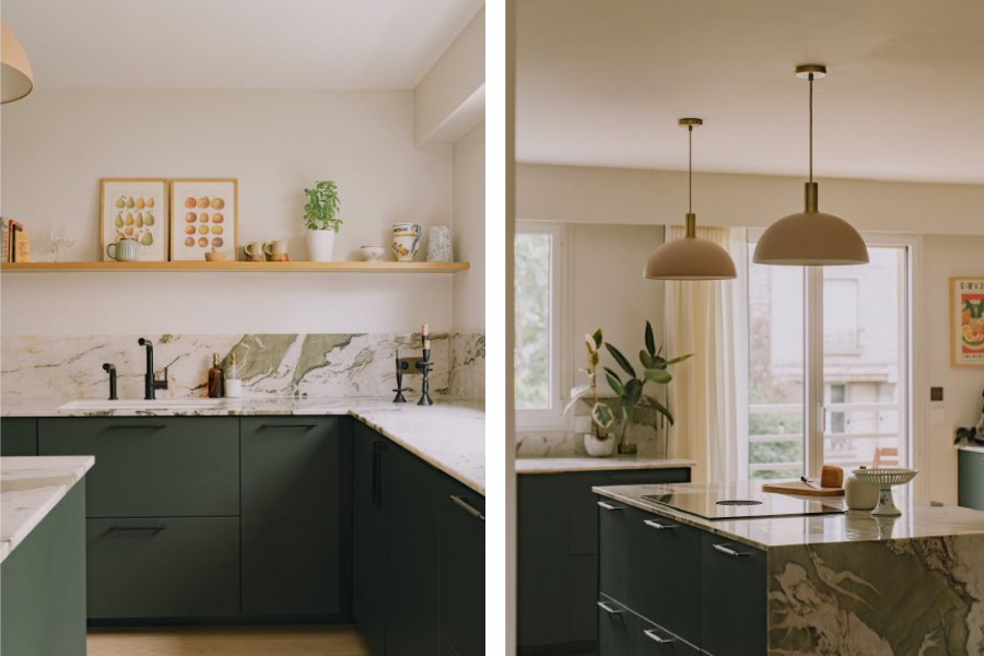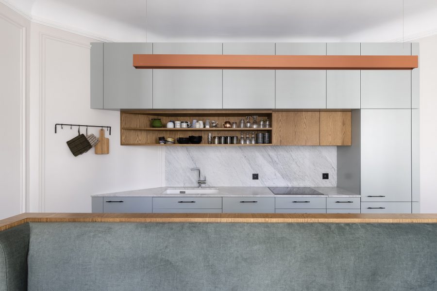 Marion de Checchi : C’est vrai que la cuisine occupe une place centrale dans les projets que nous dessinons, tant sur le plan fonctionnel qu’esthétique. Elle devient souvent le point de départ de la conception du logement : on commence par son design et son aménagement, puis cela influence le reste des espaces. C’est véritablement la « pièce de cœur » du logement. Dans ce cadre, il est possible d’exprimer créativité et identité : les clients apprécient des cuisines à la fois traditionnelles et joyeuses, avec des couleurs et des motifs qui reflètent leur personnalité. L’esprit de la cuisine se propage souvent au reste de l’habitation.