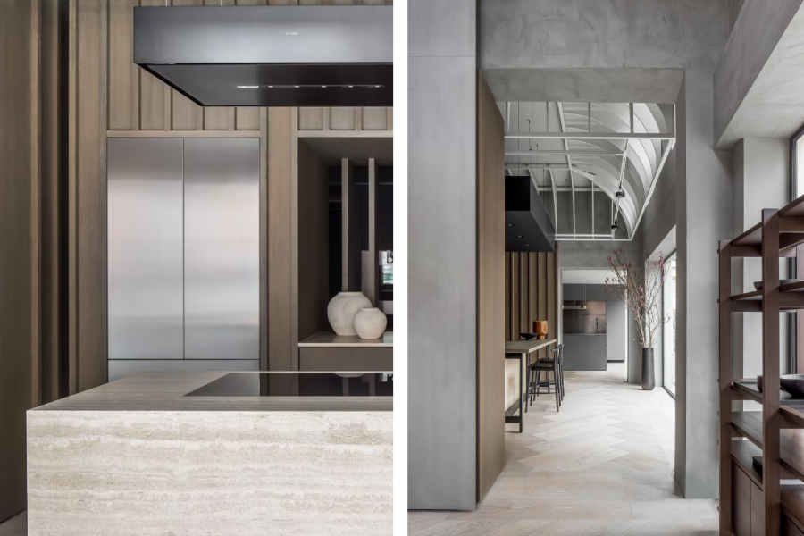 Inès Carré : En parallèle de cela, de plus en plus de foyers possèdent une multitude d’électroménagers, souvent encombrants, qu’il faut dissimuler pour conserver un espace ordonné. On observe un équilibre subtil entre exposition et dissimulation : après une période où la cuisine était largement ouverte et mise en scène, on tend aujourd’hui vers des aménagements semi-ouverts. Verrières ou cloisons légères permettent de garder la fluidité et la circulation dans l’espace tout en limitant l’exposition directe, répondant notamment aux préoccupations liées aux odeurs et à l’esthétique.